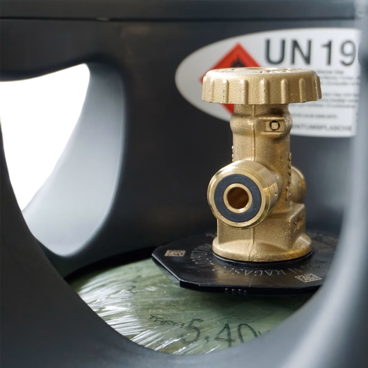 Die Composite-Gasflasche ist leichter, nutzerfreundlicher und ermöglicht gleichzeitig ein ergonomisches Handling. Im Vergleich zur Standard Stahl-Gasflasche wiegt die Composite-Gasflasche nur etwa die Hälfte und macht das Heben für alle Zielgruppen einfacher. Als Anwender können Sie den Füllstand der Composite-Gasflasche einfach ermitteln und wissen somit direkt wann nachgefüllt werden muss. Der Clue ist der transluzente Glasfaser Druckkörper, welcher den Füllstand sichtbar macht.